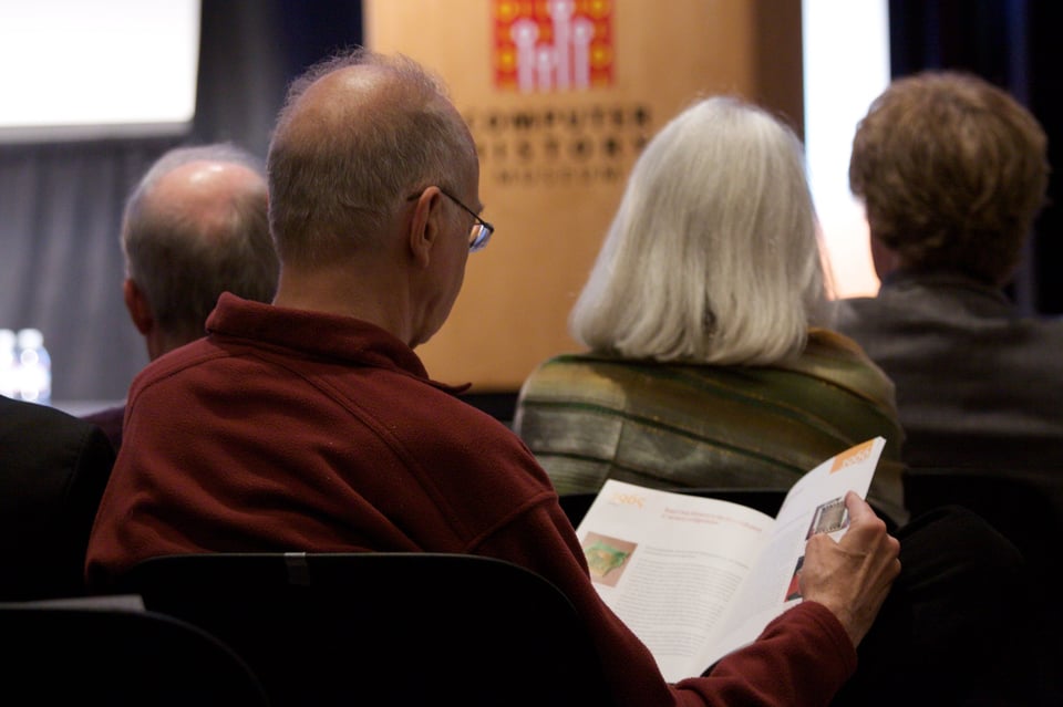 The evening of the actual integrated circuit celebration came a few weeks later. One Wednesday night, the Computer History Museum put together a series of talks in the auditorium of their impressive building in California’s Mountain View. The organizers also ordered hundreds of copies of the booklet, and put one on every seat in the large auditorium.