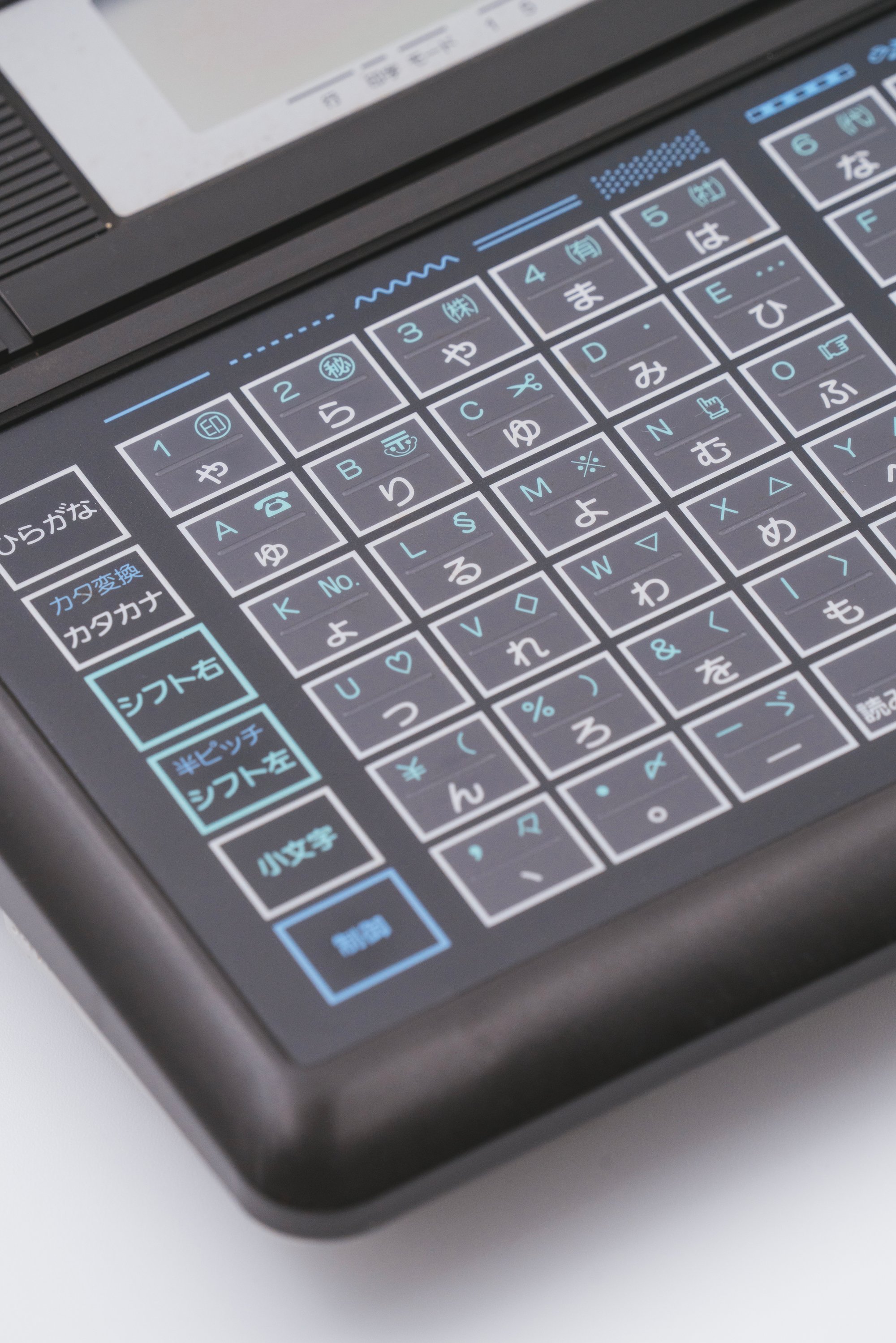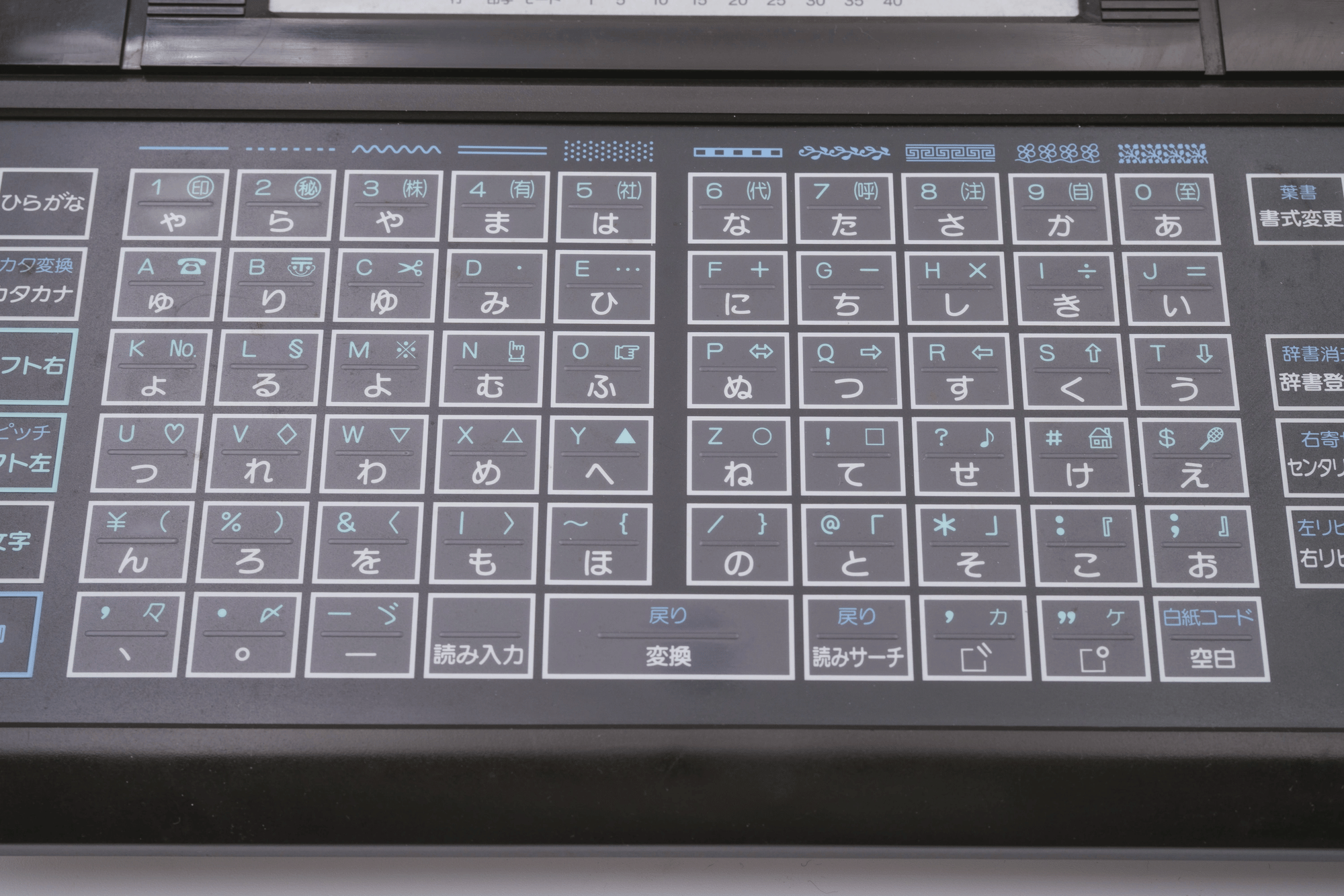 I have so many questions about this fascinating time. Was the 5×6×2 typing system actually similar to the alphabetic order in nature, some sort of a misguided Japanese stepping stone toward QWERTY, which PW-60 and later models used instead? When were these machines made and whom for? Was there one team working on them, or competing teams? I see PW auctions often translated to English as “Word Boy” – is that kind of like “Walkman”? Why does 15 come after 10? And lastly, what’s up with the sad face key on the PW-70?