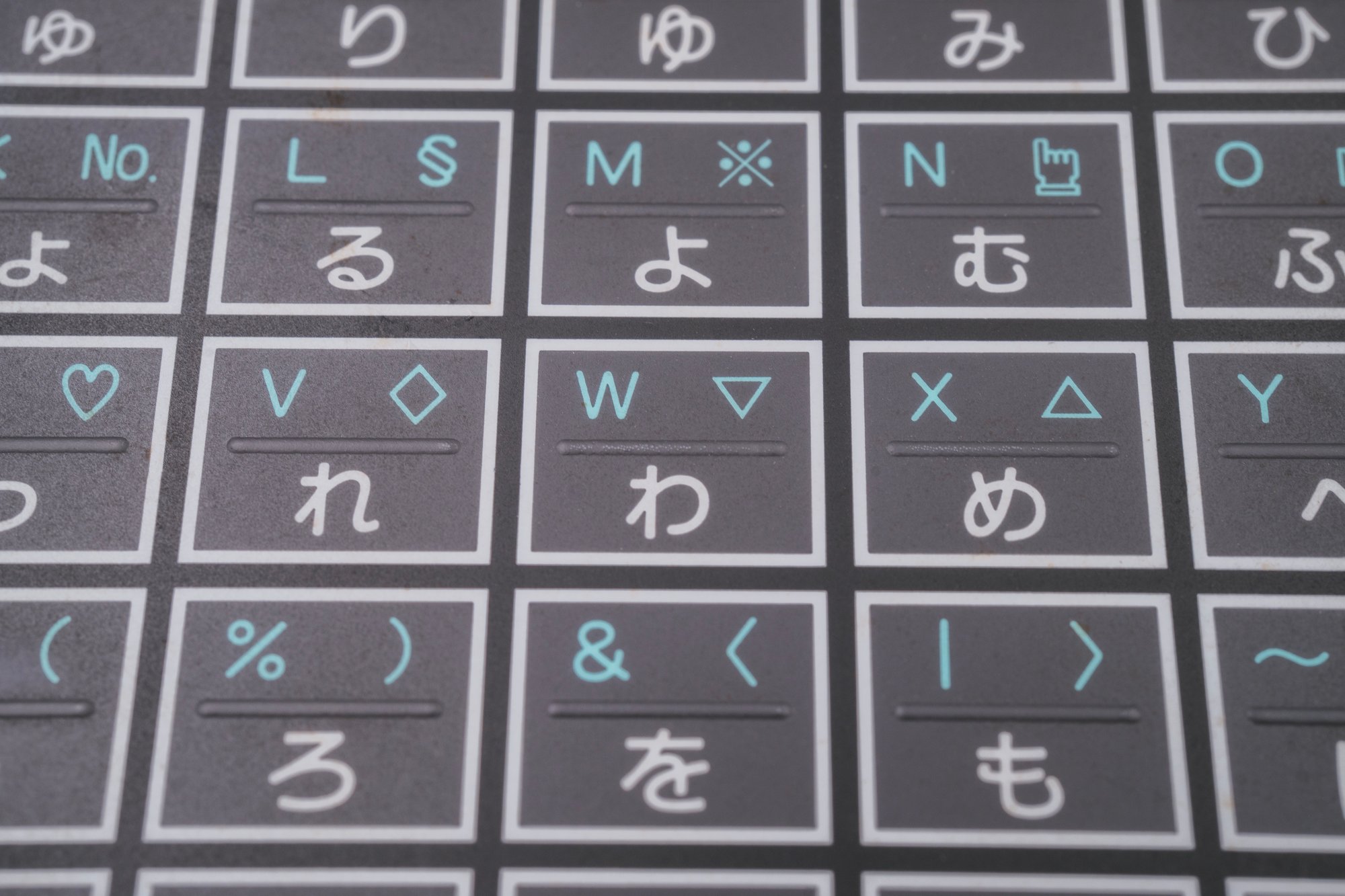 The key ordering is new still, compared to everything I listed last time. It’s a 5×6×2 matrix, and it humiliates the Latin letters with the A–Z ordering. (From the Western viewpoint, the combination of ortholinear and alphabetical is a particularly strange combination of progressive and perverse.)