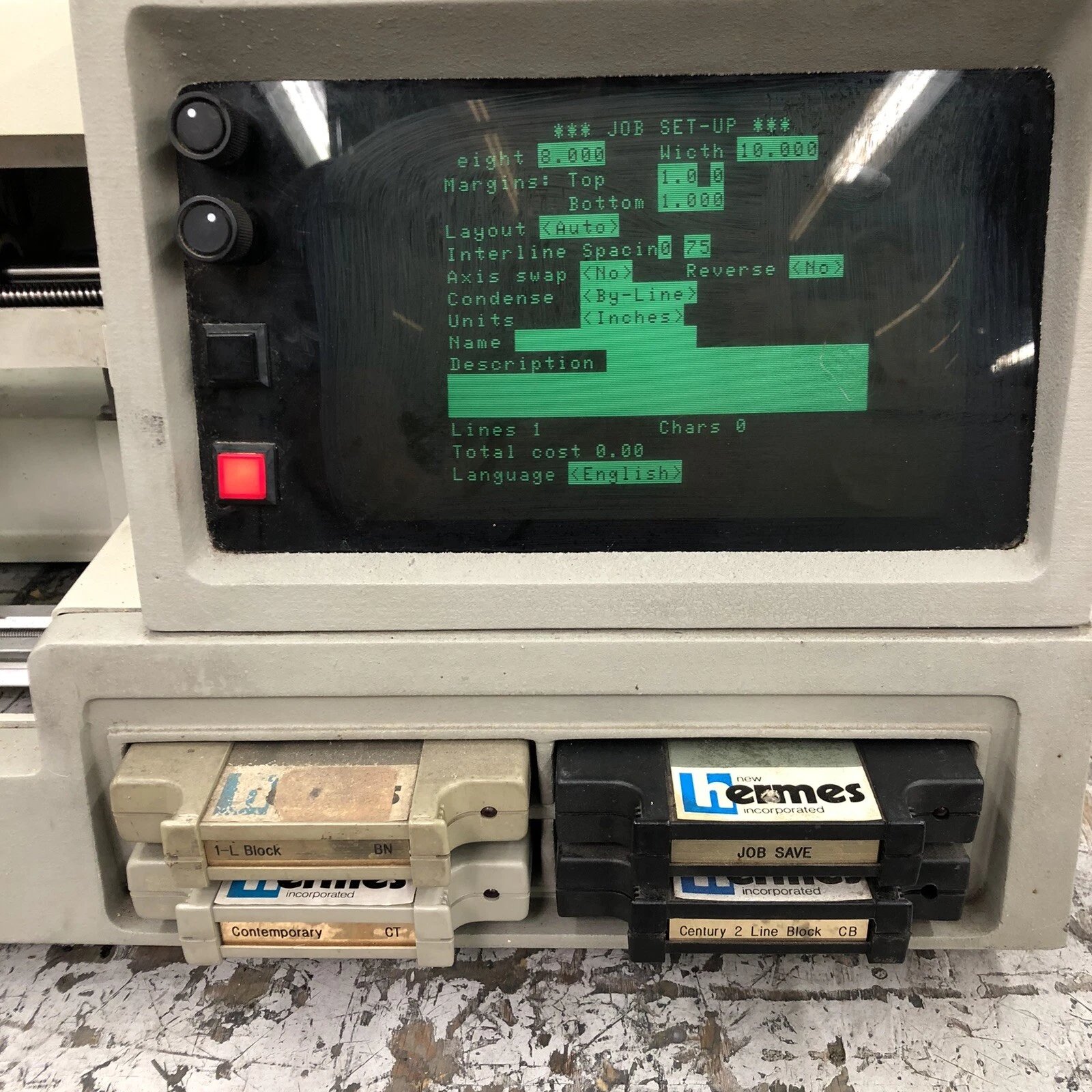 Although my finger has been spotted hovering over some blue eBay buttons, I didn’t get the New Hermes machine, as even a small beast like this would be too much for me. But I have one of its fonts that came in a cartridge (it’s a version of Gorton, of course)…