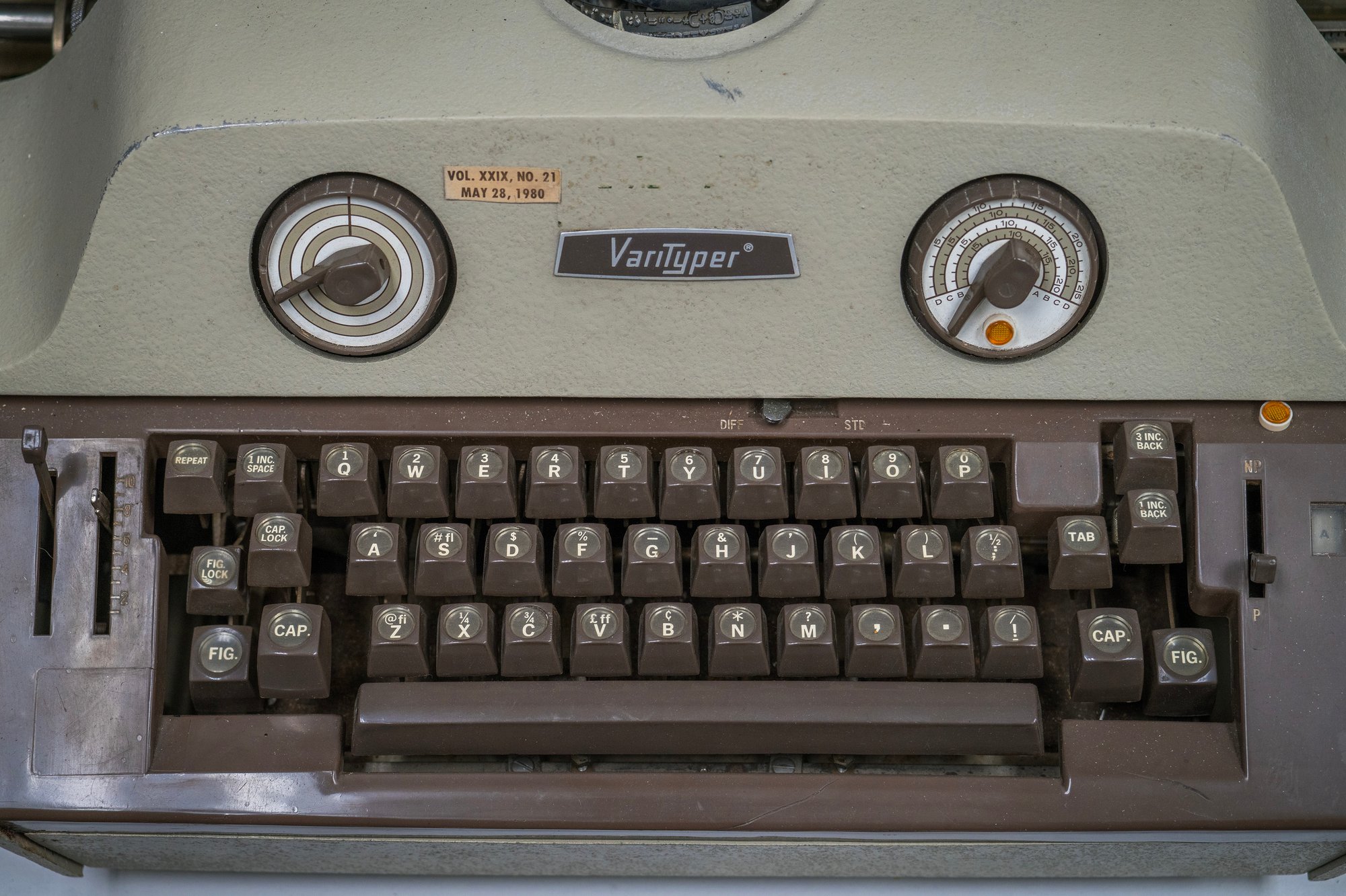 Or, should I say, QWERTY keyboards. Like Linotype, this was a shiftless system, so each set was repeated for uppercase, lowercase, small case, then three times again for italics, and sometimes even more.