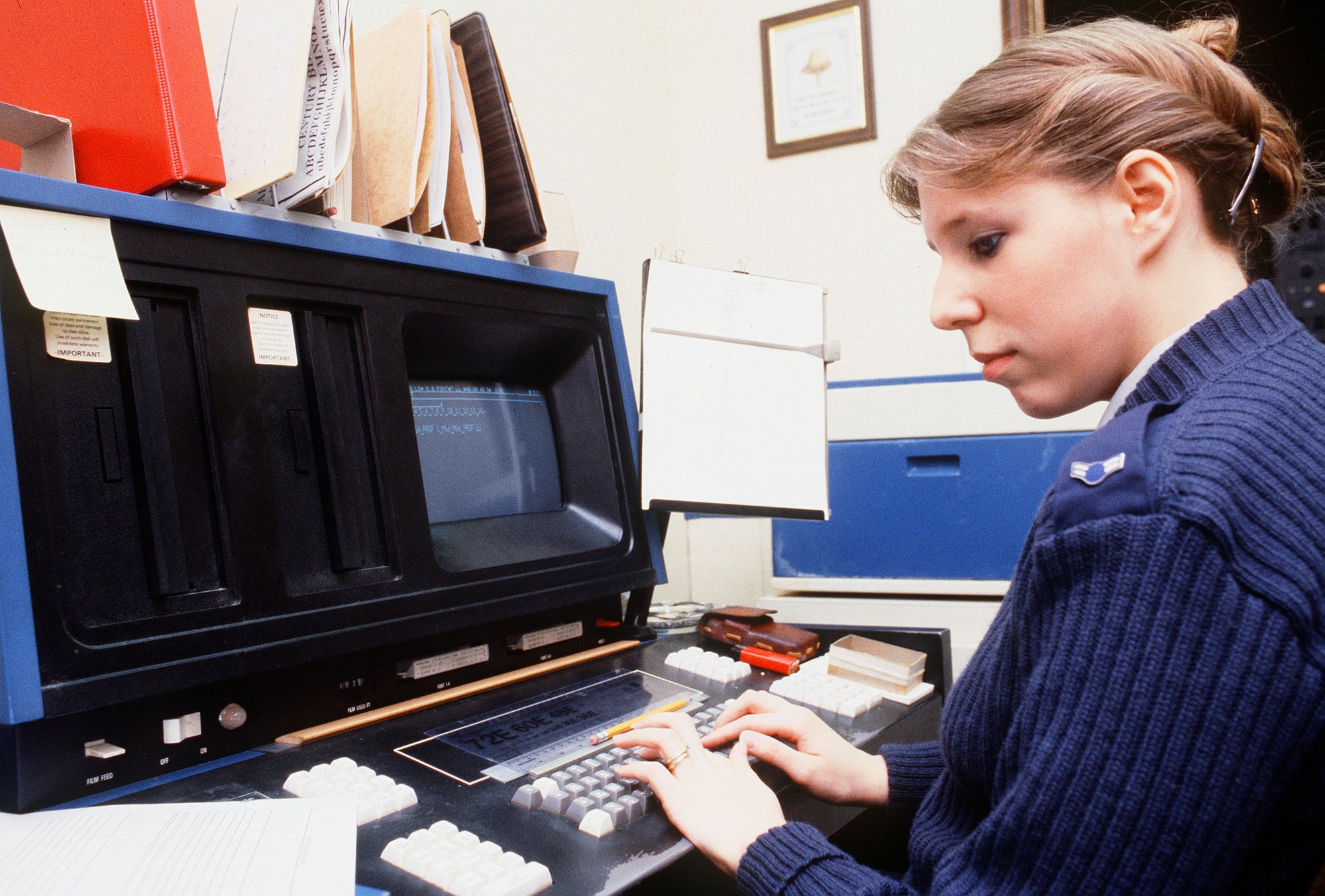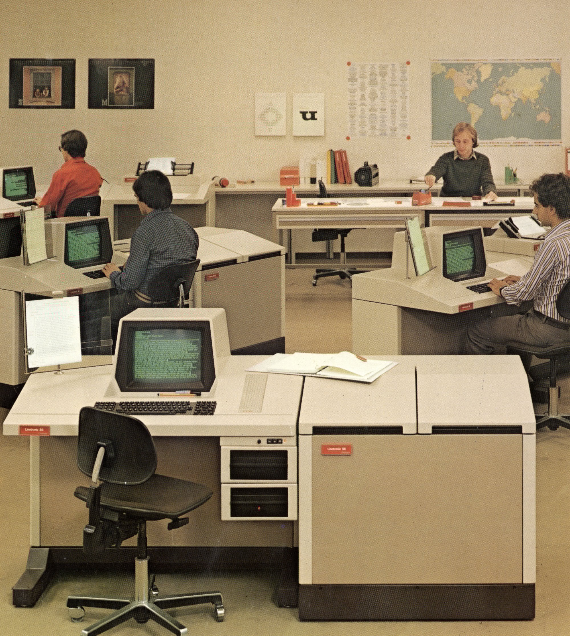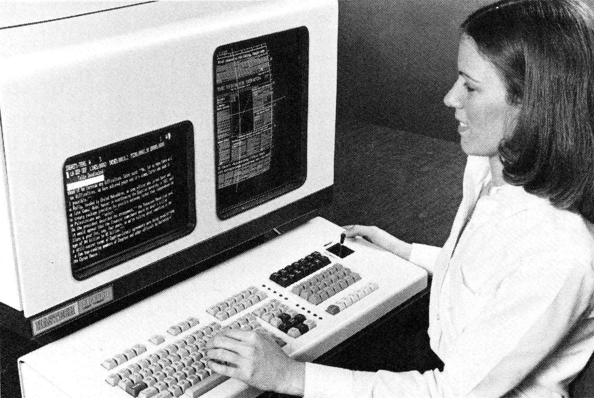 Today, all these machines are strange to look at, with huge copyholders in place where we expect displays to go, and the screens themselves, cash-register-sized, only somewhere in the periphery.