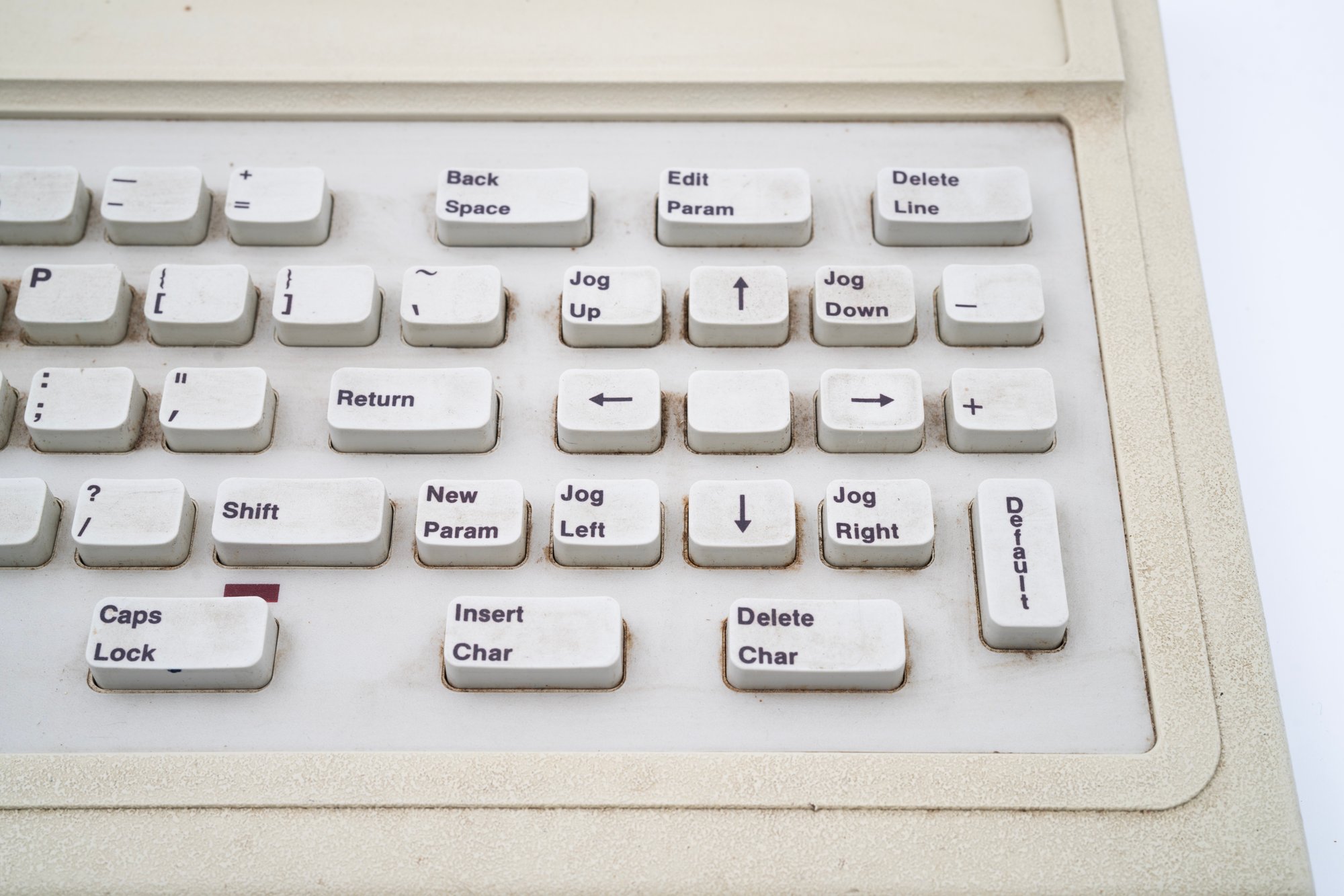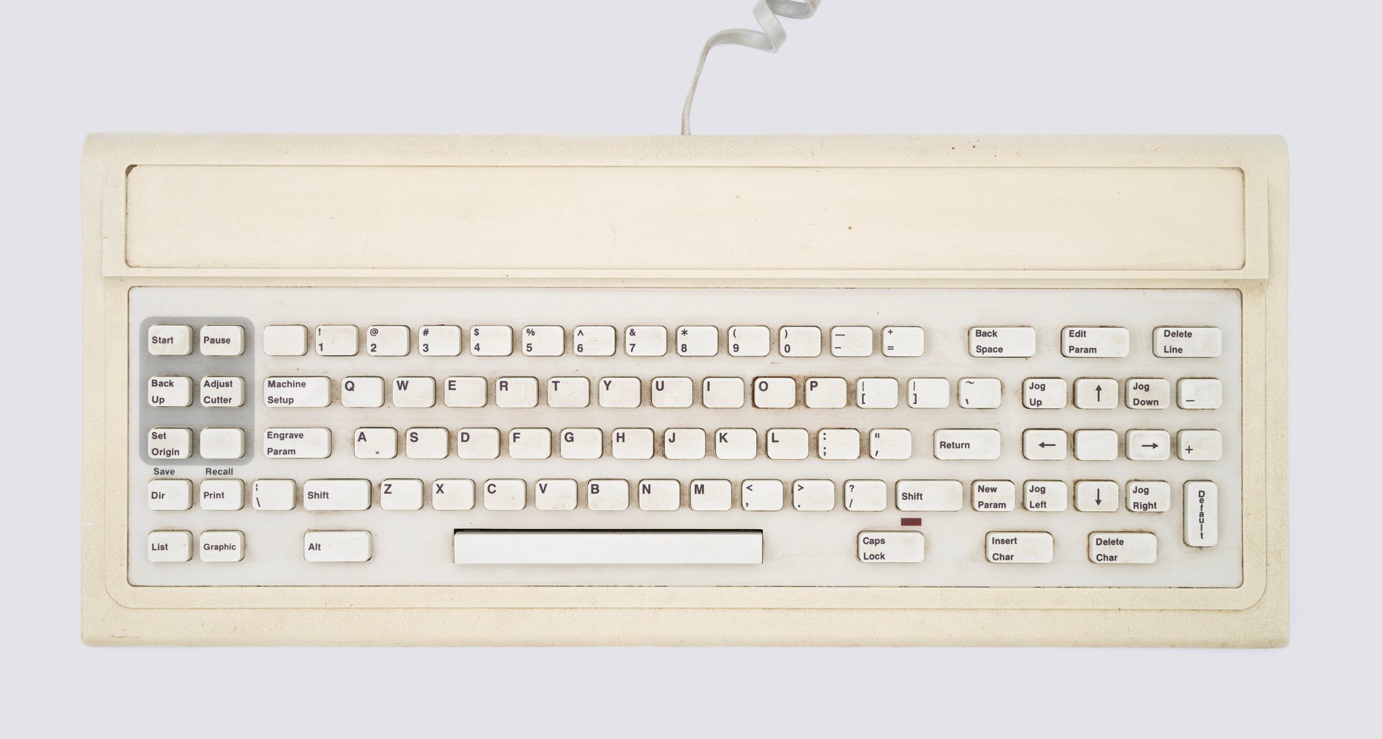 …and I have the keyboard, also filled with strange words like Engrave Param and Machine Setup and Adjust Cutter, and a Caps Lock light in a strange pl…