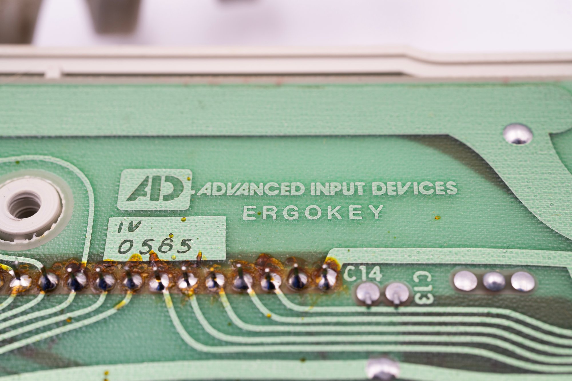This keyboard was made by Advanced Input Devices, a keyboard maker usually supplying these kinds of esoteric professional keyboards. I wrote about one of their products before – the really strange medical keyboard: