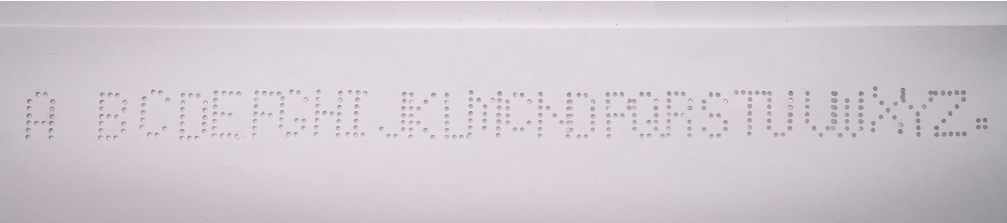 The second surprise after the “index keyboard” is that the output is not stencils or movable type. It’s, literally, a pixel font…